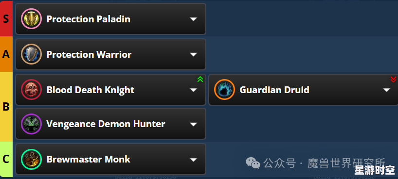 至于坦克在大秘境中的排名情况,相较于当前版本基本未发生变化。防骑依然被视为首选,其他几种坦克表现相近,而防战因其更高的生存能力被归为A级,具体细节不再赘述。